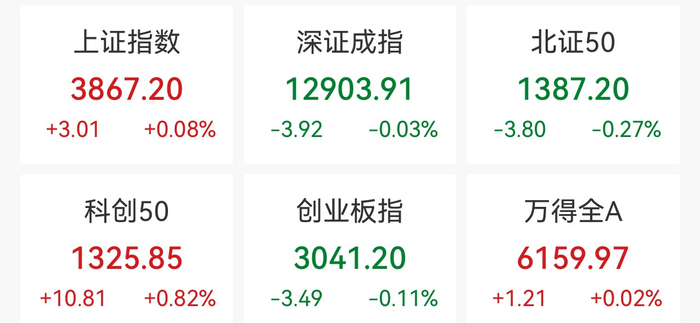 中新经纬11月27日电 27日早盘,A股三大指数开盘走势分化。上证指数涨0.08%,报3867.20点;深证成指跌0.03%,报12903.91点;创业板指跌0.11%,报3041.20点。